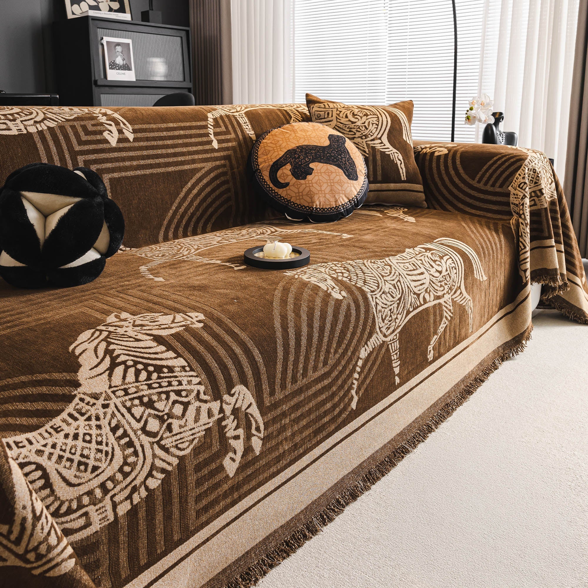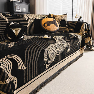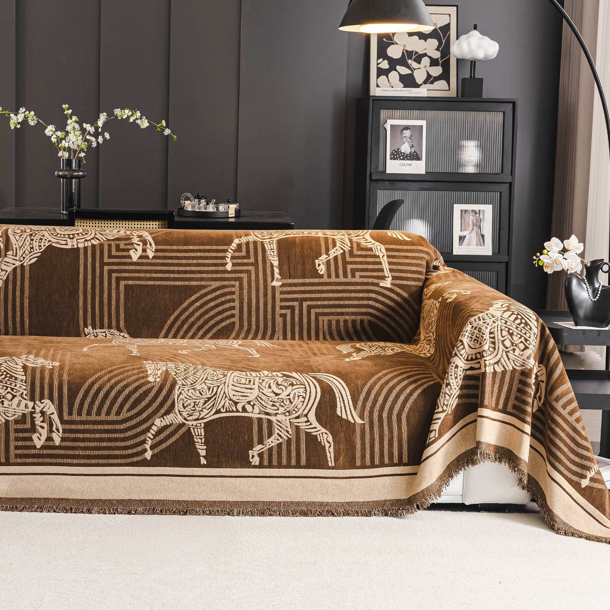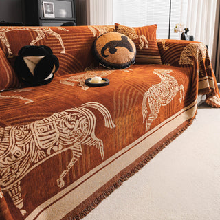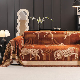 Add a touch of elegant charm and comfort to your living space with our Galloping Grace Couch Cover. With its soft, breathable fabric and delicate ruffle detailing, this cover brings cozy character and timeless style to any room. It’s a beautiful way to keep your sofa looking fresh while adding warmth and personality to your décor. Whether you're curling up with a book, hosting guests, or giving your home a quick style update, this cover delivers the perfect mix of comfort, practicality, and vintage-inspired flair.