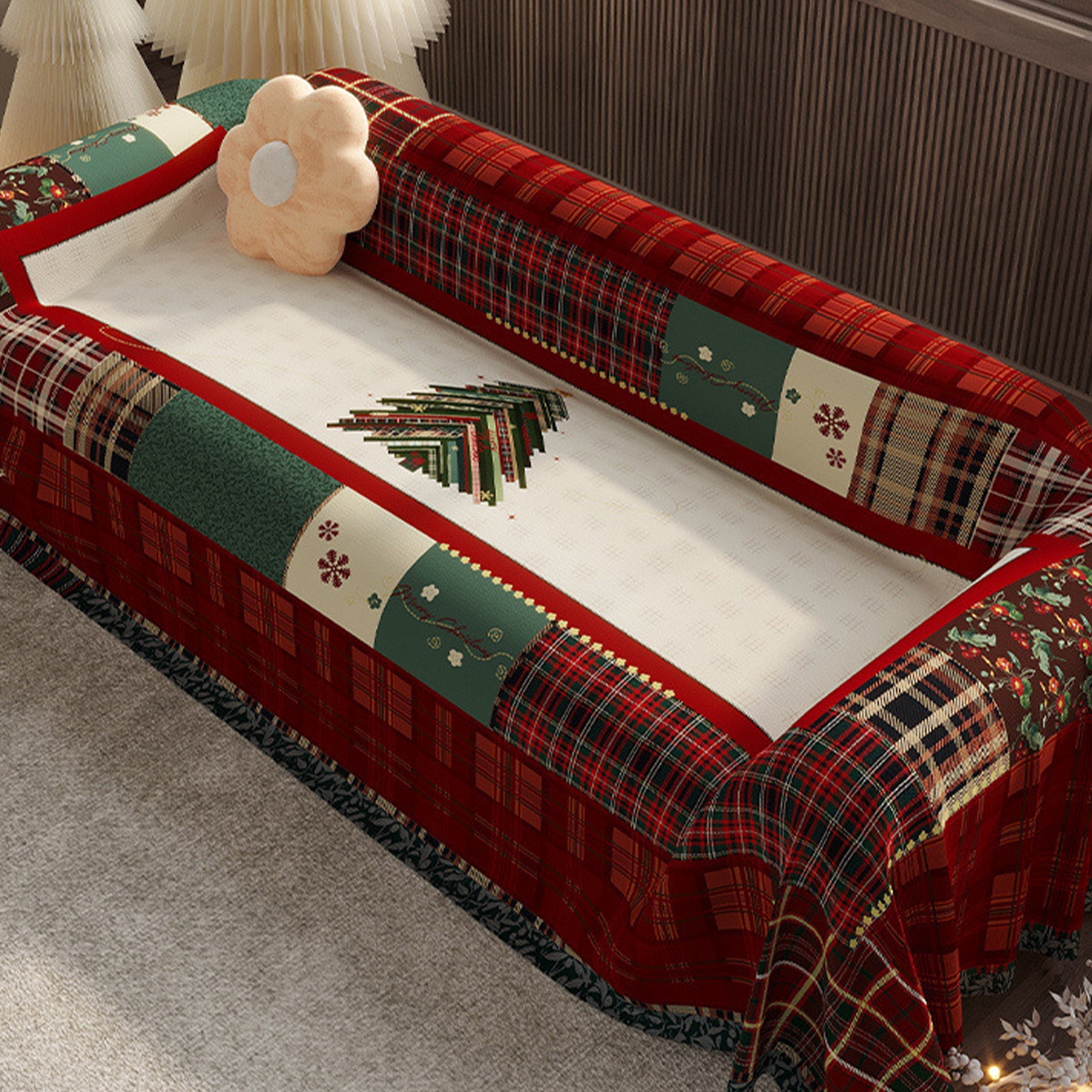 Cozy Christmas Patchwork Sofa Cover Protects Furniture & Elevates Your Holiday Home Decor