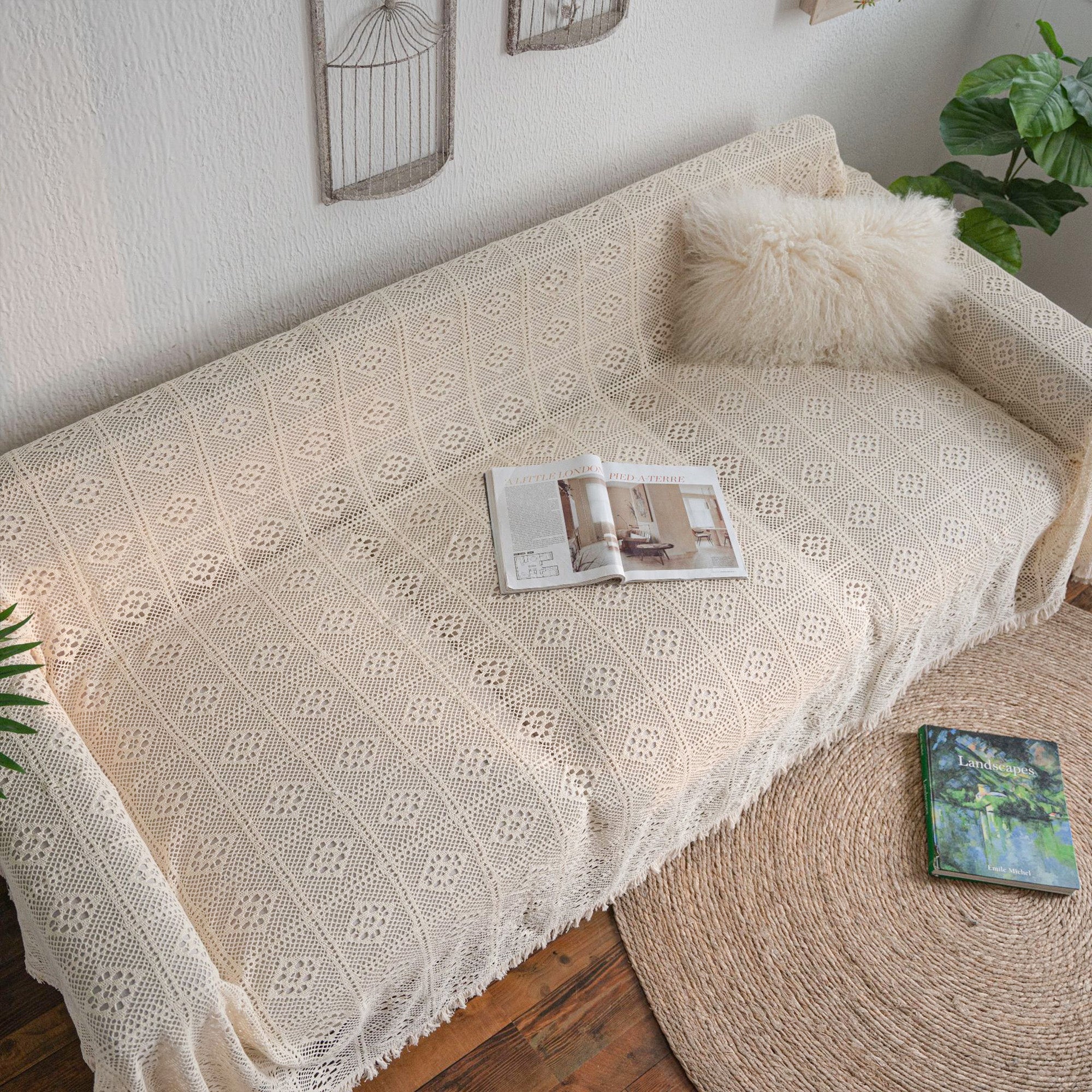 Add a touch of vintage elegance to your living space with this Crochet Lace Sofa Cover. Its intricate lace detailing and delicate fringed edges bring timeless charm and sophistication to your sofa while offering essential protection. Perfect for creating a cozy and stylish atmosphere in any room.